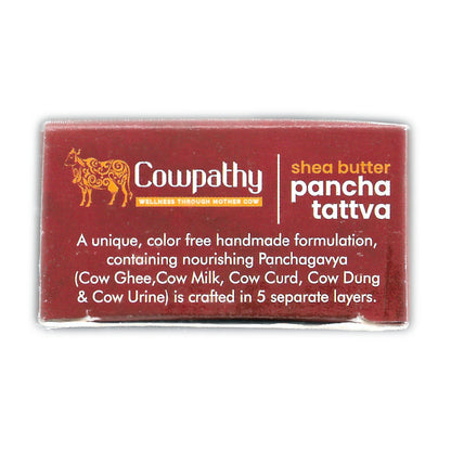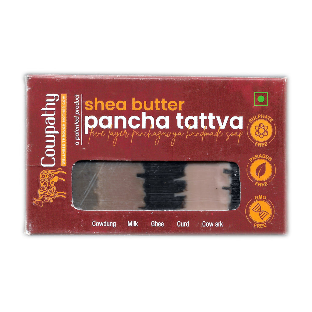 काउपैथी पंच तत्व साबुन 5 अद्वितीय सामग्रियों से तैयार किया गया एक पूर्णतः हस्तनिर्मित साबुन है। गाय के गोबर, दूध, घी, दही और गोमूत्र की अलग-अलग परत। सभी 5 तत्व इस साबुन को बनाने में इस्तेमाल होने वाले साबुन देशी गायों से प्राप्त किए जाते हैं। हस्तनिर्मित साबुन दो अलग-अलग सुगंधों में आता है, शिया बटर और शहद।