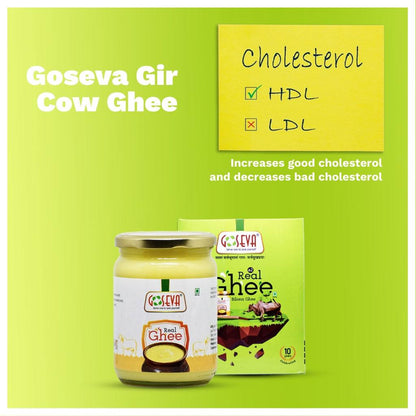 गोसेवा गिर गाय का घी, गिर गाय के दूध से बना एक प्रामाणिक A2 घी है, जो स्वस्थ कोलेस्ट्रॉल के स्तर को प्रभावित किए बिना आपके स्वास्थ्य को बेहतर बनाने के लिए बनाया गया है। एक शुद्ध, मौसमी उत्पाद होने के कारण, आप इसके रंग, बनावट, सुगंध और स्वाद में प्राकृतिक बदलाव देख सकते हैं।