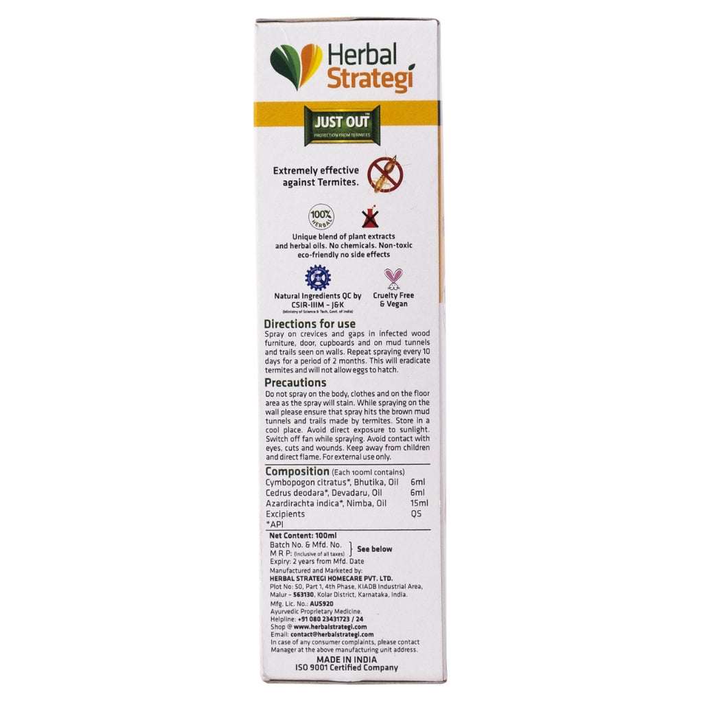 हर्बल दीमक विकर्षक स्प्रे आपके लकड़ी के फर्नीचर को हर तरफ से सुरक्षा प्रदान करता है। अपने फर्नीचर को दीमक के हमले से बचाएं, हर्बल स्ट्रेटेजी का दीमक स्प्रे दीमक से पूरी सुरक्षा सुनिश्चित करता है। संक्रमित लकड़ी के फर्नीचर, दरवाजे, अलमारी, मिट्टी की सुरंगों और दीवारों पर दिखने वाले निशानों में दरारों और अंतराल पर बस स्प्रे करें। 2 महीने तक हर 10 दिन में स्प्रे दोहराएँ, इससे दीमक खत्म हो जाएगी और अंडे फूटने नहीं देंगे।