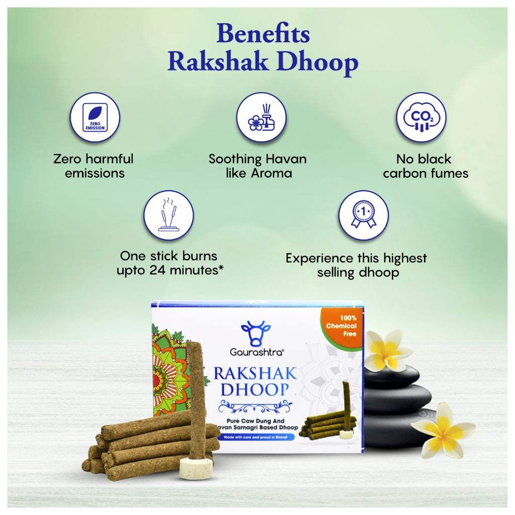 गौरराष्ट्र रक्षक गाय के गोबर की धूप बत्ती के साथ पारंपरिक स्वास्थ्य के सार को फिर से खोजें। उच्च गुणवत्ता वाले गाय के गोबर और प्राचीन जड़ी-बूटियों से सावधानीपूर्वक हस्तनिर्मित, ये पर्यावरण-अनुकूल अगरबत्तियाँ एक शांत और उत्साहवर्धक वातावरण बनाने में मदद करती हैं। चाहे ध्यान, प्रार्थना या रोज़मर्रा के उपयोग के लिए, रक्षक धूप एक स्वच्छ और अधिक आध्यात्मिक स्थान के लिए एक सुरक्षित, सुगंधित समाधान है।