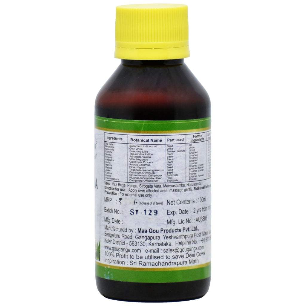 इसका उपयोग वात रोग, पंगु, सिरोगत वात, मन्यस्तंभ, हनुस्तंभ के लिए करें। प्रभावित क्षेत्र पर लगाएं। उपयोग से पहले धीरे से मालिश करें और अच्छी तरह हिलाएं।